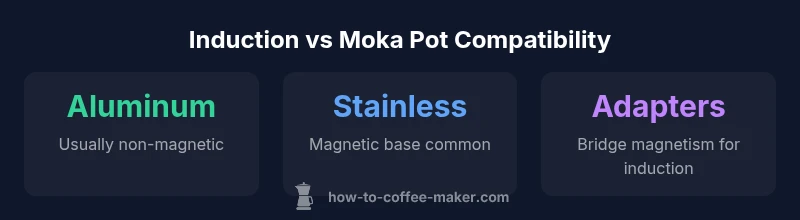 Key takeaways: Induction compatibility hinges on magnetic contact; aluminum classic moka pots usually require a workaround; stainless-steel versions or adapters are the straightforward solution for induction users.