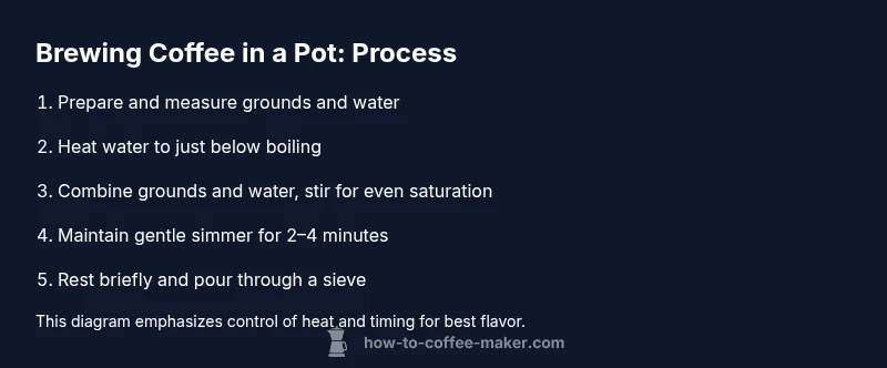 You will learn how to make coffee in a pot using a straightforward stovetop method. Gather coffee (ground or whole beans you plan to grind), water, a pot, and a heat source. Heat the water gently, add coffee, brew briefly, and pour. This guide covers grind, ratio, temperature, and cleanup to ensure a balanced cup.