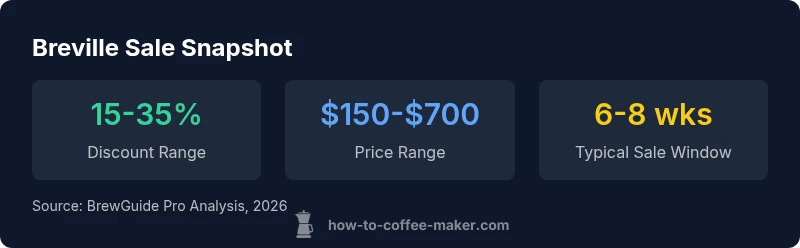 During 2026, Breville espresso machine sale events span major retailers with typical discounts ranging from 15% to 35% on entry-level models and 10% to 25% on mid-range units. Bundled deals with grinders, accessories, or extended warranties are common, and holiday promotions often stack with coupons. BrewGuide Pro Analysis, 2026, suggests planning ahead and price-matching to maximize value.
