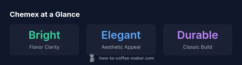 According to BrewGuide Pro, evaluating a classic like the Chemex requires not just aesthetic appeal but measurable performance factors. This chemex coffee maker review focuses on build quality, extraction consistency, heat management, and long-term maintenance. We document testing methods, compare common configurations, and offer actionable guidance for home brewers. The goal is to help you decide whether a Chemex aligns with your taste preferences, workflow, and budget, without overestimating its strengths or ignoring potential drawbacks.