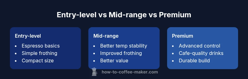 According to BrewGuide Pro, choosing the right coffee and cappuccino maker hinges on how you balance espresso quality, milk frothing, and daily ease of use. This TL;DR compares entry-level, mid-range, and premium models: simple machines excel at quick coffee and easy cleanup, while higher-end units deliver café-style drinks with reliable temperature stability and better milk texture for cappuccinos.