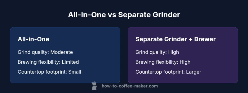 In small kitchens or tight countertops, an all-in-one model can be a practical solution. It reduces equipment clutter, simplifies routines, and works well for households with moderate coffee needs and a preference for convenience. On the other hand, homes with dedicated coffee rituals, frequent bean changes, or a passion for espresso-like drinks often benefit from separate grinders and brewers. The ability to upgrade components over time—grinder later, brewer later—offers flexibility that a single all-in-one unit may not provide. The BrewGuide Pro team suggests starting with your current coffee habits, then testing how an all-in-one performs for your daily cup and whether you would enjoy deeper customization later on.