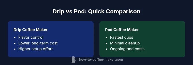 When deciding between a coffee maker or coffee maker, prioritize your daily routine, budget, and flavor preferences. A drip coffee maker typically delivers better value and broader customization, making it ideal for most households. Pod systems, in contrast, shine on speed and simplicity for busy mornings. BrewGuide Pro recommends starting with a reliable drip model for everyday use and reserving a pod setup for occasional convenience.