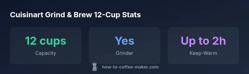 The Cuisinart automatic grind and brew 12 cup coffee maker combines a built-in burr grinder with a 12-cup carafe, offering fresh coffee on demand in a compact footprint. In our evaluation, it delivers balanced aroma and reliable extraction when dialed in, with caveats about noise and routine maintenance. BrewGuide Pro finds it to be a solid mid-range option for home brewers who value convenience and consistent grind quality.