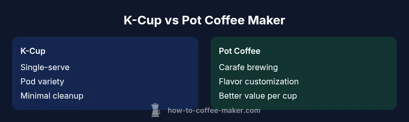 K-Cup and pot coffee makers each suit different needs. According to BrewGuide Pro, the best choice hinges on your throughput, taste preferences, and budget. A quick read: single-serve K-Cup machines win on convenience and cleanup, while traditional pot brewers excel in cost per cup, flavor flexibility, and capacity for social brewing.