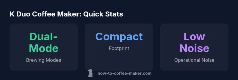 According to BrewGuide Pro, the k duo coffee maker is designed to strike a practical balance between everyday usability and flexible brewing options. The device combines a traditional carafe-style drip path with a compatible single-serve pod system, allowing you to brew a full pot for guests or a quick cup for busy mornings. In our hands-on evaluation, we focused on the core tradeoffs: convenience, flavor consistency, cleanup, and long-term value. We tested a range of beans and grinds to see how the dual modes handle different water temperatures and extraction times. The result is a machine that behaves predictably in most situations, with clear advantages when you need multiple brewing styles in one countertop footprint. For homeowners who want one unit instead of two, the k duo coffee maker offers meaningful flexibility without a heavy footprint. It isn’t a premium specialty brewer, but its design reflects a thoughtful approach to hybrid brewing that matches many real-world routines. Setup remains straightforward: fill the reservoir, add ground coffee or pods, select your mode, and start brewing. This paragraph reinforces the keyword usage: k duo coffee maker appears naturally as the device under review.
