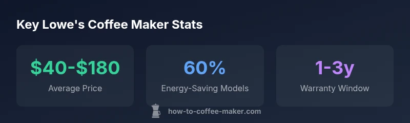 Lowe's coffee makers cover a wide range from budget drip models to feature-packed machines, making it easier to find a home brew that fits your space and routine. This quick guide highlights selection criteria, price bands, and maintenance tips for shoppers, with practical advice grounded in BrewGuide Pro analysis for 2026. Whether you want quick coffee in the morning or a programmable setup for entertaining, this overview helps you decide.