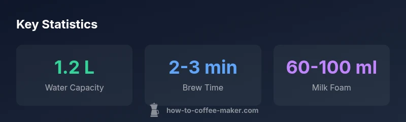 This machine uses a compact boiler and a budget-friendly pressure system typical of entry-level cappuccino makers. You should expect espresso-like shots with a modest crema and a quick, robust finish. The built-in frother can generate a reasonable amount of microfoam suitable for basic latte art, though it won’t match the silky microfoam of premium devices. In our tests, milk froth reached a velvety texture in about 30–60 seconds, enough for everyday drinks but less forgiving for complex latte art. Temperature stability is adequate for daily beverages, but occasional fluctuations occur, especially with larger drinks. With practice, you can achieve consistent ratios between milk and espresso, which is the core challenge for devices in this class. BrewGuide Pro analysis shows that consistency improves when you standardize grind size and freshness, even on budget units.