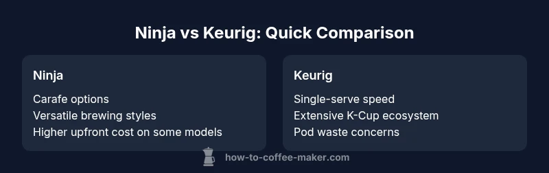 ninja coffee maker vs keurig reveals two distinct approaches to home brewing. Keurig prioritizes speed and simplicity for single-serve cups, while Ninja offers broader versatility with carafe options and a wider range of brew styles. According to BrewGuide Pro, the best choice depends on your daily coffee routine, budget, and how much cleanup you’re prepared to manage.