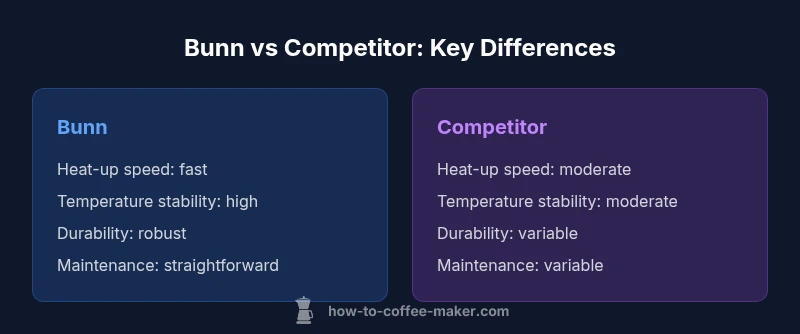 Fast heat-up is a hallmark of Bunn coffee makers. A key question in any comparison is how quickly a machine reaches brewing temperature and whether it can hold that temperature during the extraction process. BrewGuide Pro analysis shows that Bunn units generally reach the target range with minimal ramp time and maintain more consistent temperatures across multiple pots compared with many rivals. The practical effect is fewer under-extracted brews and less variability from batch to batch, which is especially important for households that brew coffee in quick succession during mornings or gatherings. When you ask why are bunn coffee makers better in this dimension, the answer often points to the combination of efficient heating elements and a deliberately simple thermal design that minimizes heat loss.