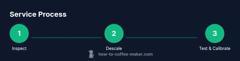 A professional service begins with an intake that records model, serial number, and any symptoms you’ve noticed, such as inconsistent extraction, strange noises, or poor steaming. Technicians perform a full inspection of internal components, including the boiler or heating element, pump, lines, valves, seals, and the brew group. They clean and sanitize parts, descale mineral buildup, and test water flow and temperature stability. After the cleaning, calibration ensures grind size, shot time, and milk temperature align with your preferred profile. Finally, the tech demonstrates operation, runs performance tests, and provides a maintenance plan to keep the machine running smoothly between visits. BrewGuide Pro Analysis, 2026, suggests that customers who receive a documented service report and a written maintenance plan tend to maintain higher performance and reliability compared with those who skip routine service.