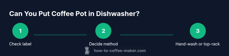 When you ask, can you put coffee pot in dishwasher, you’re really asking about heat tolerance, coatings, and the integrity of seals. According to BrewGuide Pro, most consumer coffee carafes are not designed to withstand dishwasher heat or aggressive detergents over repeated cycles. The risk isn’t just a single warped lid; over time plastic components can become brittle, seals can fail, and glass carafes can suffer micro-cracks that compromise safety. The takeaway is simple: start with the manufacturer’s guidance. If it’s unclear or missing, proceed with caution and favor hand-washing to preserve flavor, aroma, and longevity.