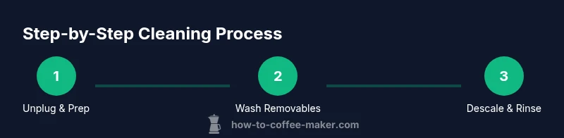 This section provides a high-level map of the cleaning process. The detailed, numbered steps follow in the dedicated STEP-BY-STEP block. Start by safely powering down and removing removable parts. Clean each component with warm soapy water, then descale the interior according to your chosen method. After descaling, perform multiple rinse cycles with clean water to flush every channel and filter basket. Finally, dry all parts completely before reassembling. This overview ensures you have a clear path from shutdown to ready-to-brew status without rushing.