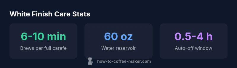 White surfaces show mineral residues more readily, so a proactive cleaning routine matters. Start with daily quick-wipes to remove splashes, followed by weekly more thorough rinses. Use a mild dish soap and a non-abrasive sponge, then wipe dry to prevent water spots. For deeper cleaning, fill the reservoir with warm water and a gentle descaler, then run a brew cycle without coffee. Rinse thoroughly by running two full cycles with clean water afterward. Always dry the hot areas to prevent condensation streaks that can affect appearance and odor. In addition to routine wiping, consider a monthly wipe-down of accessible areas to keep the finish looking pristine.