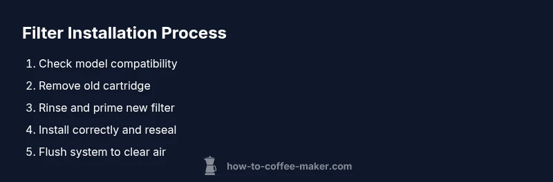 This overview maps out the main phases of installation so you know what to expect, without diving into model-specific quirks. First, verify filter compatibility and gather your tools. Next, power down the unit and access the filter housing. Then, remove the old cartridge, reset any indicators if required, and prepare the new cartridge according to the manual. Install the new cartridge in the correct orientation, reassemble the housing, and snug the lid. Finally, flush the system to remove air and any loose particulates, and reset any maintenance counters per the manual. While many details depend on the exact model, the high-level flow remains consistent across most home coffee machines.