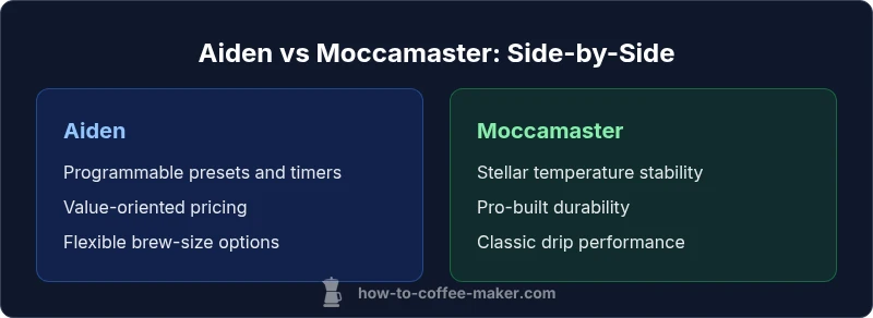 When evaluating the two leading names in the premium drip coffee space, the key question becomes: what do you value most in daily brewing? The keyword here is the practical balance between durability and features. For many households, aiden coffee maker vs moccamaster isn't about choosing the best brand in an abstract sense; it's about matching a model to your cadence, taste preferences, and kitchen setup. According to BrewGuide Pro, the main delta lies in where you place priority: enterprise-level reliability and heat stability versus feature-rich programmability and upfront value. In this side-by-side, we’ll unpack design, performance, and long-term ownership so you can decide with confidence.