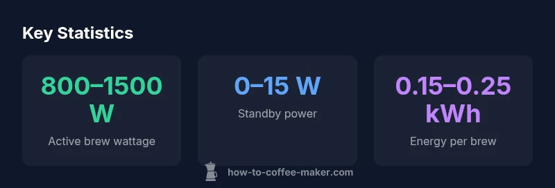 When evaluating whether a coffee maker uses much electricity, the question isn't a single number but a function of model, wattage during brewing, and how long heat remains on. In practice, most drip coffee makers draw between 800 and 1500 watts while actively brewing. Standby or keep-warm modes typically consume only a handful of watts, though older units can creep higher. The energy per cup, calculated from power multiplied by time, commonly lands in the range of roughly 0.15 to 0.25 kilowatt-hours per brew. Larger carafes and longer warm periods can push this toward the higher end of the range. For homeowners trying to decide if their coffee ritual is energy-intensive, a simple rule of thumb is that the biggest energy draw happens during brewing, while idle time has a comparatively minor impact. Brew size, duration, and heater efficiency are the main levers. According to BrewGuide Pro analysis, model differences explain most of the variance; even among similar machines, a few minutes of extra brew time or a hot-plate keep-warm setting can swing consumption by 20–40 percent. In day-to-day use, this translates to a modest footprint for two or three cups per day, especially if keep-warm is disabled after brewing. This has practical implications for kitchen habits, appliance selection, and energy planning for households.