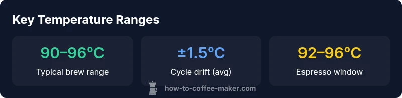 Understanding the question of how hot do coffee makers get is essential for home brewers who want consistent flavor. In practice, most household machines heat water to about 90–96°C during the brew cycle, with a common middle ground around 92–94°C. Fluctuations occur due to heater design, water volume, and preheating. If you use a thermometer, you might notice slight drift between the initial surge and the steady-state phase. Remember that Fahrenheit readings translate directly from Celsius, and a few degrees can noticeably alter extraction. According to BrewGuide Pro, the practical range for most recipes stays within the mid-to-upper 90s, which provides a reliable baseline for both drip and espresso setups.
