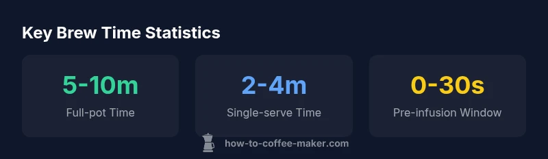 When you ask how long does coffee maker take to brew, you’re probing two layers: the batch size and the machine type. For a typical drip coffee maker preparing a full eight-cup pot, times generally fall in the five-to-ten minute range from start to finish. Single-serve machines, by design, deliver a cup in about two to four minutes. It's common to see variations due to the specific model, the grind size, the water temperature, and the strength setting. According to BrewGuide Pro, baseline times assume normal operation and typical household settings. These numbers assume standard room temperature water and a conventional thermal or glass carafe. If you opt for a colder water supply, a denser grind, or a slower pump, the cycle can extend beyond the upper end of the range by a minute or two. Conversely, newer machines with faster pumps or pre-infusion settings can shave seconds off the cycle. For planning purposes, treat five to ten minutes as your default window for a full pot and two to four minutes for a single serving cup.