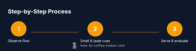 To judge completion, train your senses on three primary cues: aroma, color, and flow. Aroma should be rich and inviting, not scorched. As the brew approaches completion, you may notice a deeper sweetness and nuttiness; if it turns acrid, it's a sign extraction is too aggressive. The color in the upper chamber shifts from light brown to a darker, caramel tone. Finally, watch the flow through the spout: a steady, continuous stream indicates a smooth extraction; a chaotically foaming brew suggests you should pause and adjust the grind or heat. BrewGuide Pro Team emphasizes consistency: small changes in grind size or water temperature can shift these cues noticeably. Practice with one variable at a time, and always taste a small cup to confirm balance before pouring the rest.