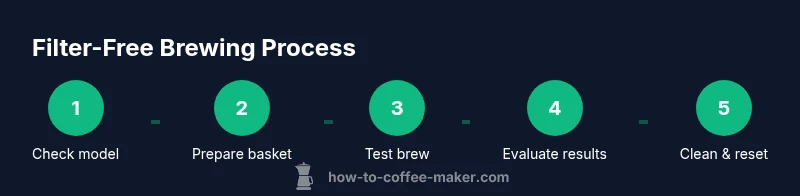Testing for filter-free compatibility requires a careful, repeatable process. Start by identifying your basket type and whether the machine has a dedicated filter-free setting. If your model supports filter-free operation, proceed with a controlled test: brew a standard cup with a clean permanent filter or with no filter if the manual permits. Use a consistent coffee-to-water ratio and grind size. Observe if grounds escape into the carafe, if the brew pours evenly, and whether the aroma and flavor shift noticeably. Record results, then repeat with a standard paper or permanent filter to compare. If you see grounds or sediment consistently in the cup, revert to filtered brewing and note the difference in taste and mouthfeel for future reference.