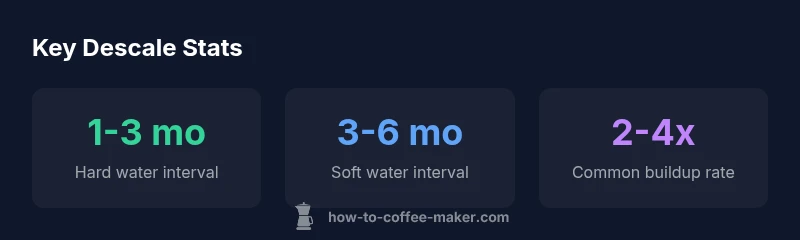 Descaling frequency is not a one-size-fits-all answer. The core question—how often to descale coffee maker—depends on water hardness, daily usage, and the specific brewer you own. According to BrewGuide Pro, mineral content in your tap water drives buildup, while how often you brew and how hot you run the system accelerates calcium deposit formation. If you want a practical starting point, adopt a schedule that treats hard-water machines more aggressively and soft-water machines with a lighter touch. Regardless of the model, the goal is to keep the water flow free from mineral crusts and preserve heat transfer efficiency for optimal extraction. A regular descaling rhythm helps maintain flavor clarity, ensures uniform temperature, and extends the life of seals and gaskets. Implement a plan, then adjust as you gain firsthand feedback from your brewer.