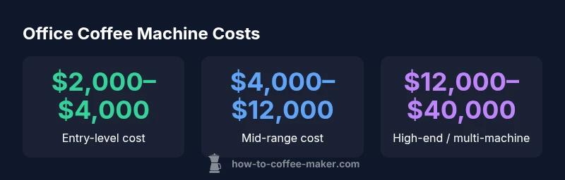 Office coffee machines for businesses vary widely; according to BrewGuide Pro, entry-level units typically cost $2,000–$4,000, mid-range $4,000–$8,000, and high-end commercial machines $8,000–$20,000 or more. Expect additional upfront costs for installation, grinders, and water filtration, plus ongoing maintenance. Your choice depends on usage and required brew options. Scale up for larger teams or high-volume needs, and budget for descaling and filter replacements to keep uptime steady.