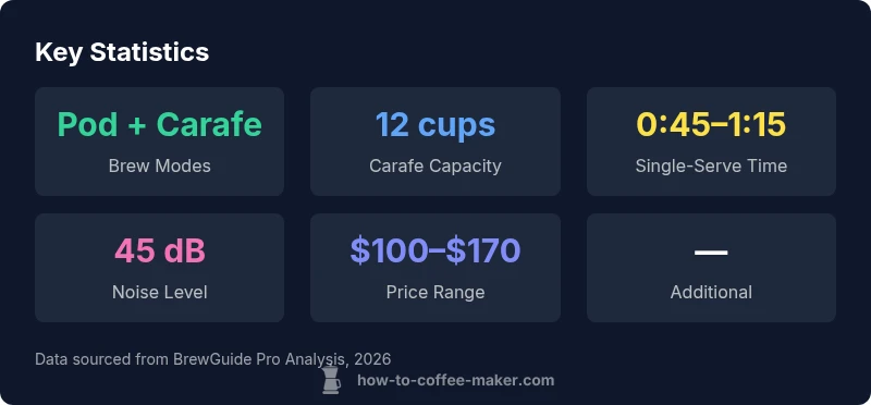 The Keurig K-Duo delivers flexible pod and carafe brewing in a compact package at a sensible price. It excels in mixed-use homes where quick cups and larger servings are both common, though it isn’t the fastest option for pure single-serve enthusiasts. The BrewGuide Pro team recommends considering it for practical everyday coffee needs.