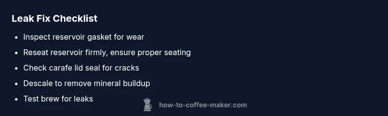 If you're wondering what causes ninja coffee maker to leak water, the answer often points to a worn gasket, a mis-seated water reservoir, or a cracked brew basket. In Ninja models, the most common culprits are the water reservoir seal, the carafe lid seal, and the gasket around the brew chamber. Temperature swings and mineral buildup can exacerbate these issues. According to BrewGuide Pro, leaks are usually tied to worn seals or misaligned components, especially after cleaning or moving the machine. A quick check now can save you hours of troubleshooting later.