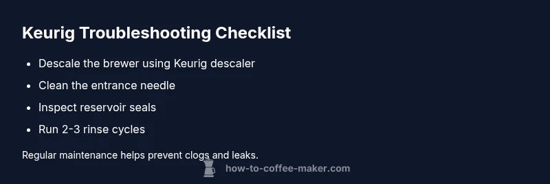 Urgent, practical guide to diagnose and fix common Keurig issues. Learn descaling, needle cleaning, leaks, and when to call a pro for persistent problems.