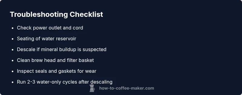 Key idea: start with the easiest checks and move to targeted fixes. The more you know about what’s wrong with your coffee maker, the quicker you can return to hot, flavorful coffee.