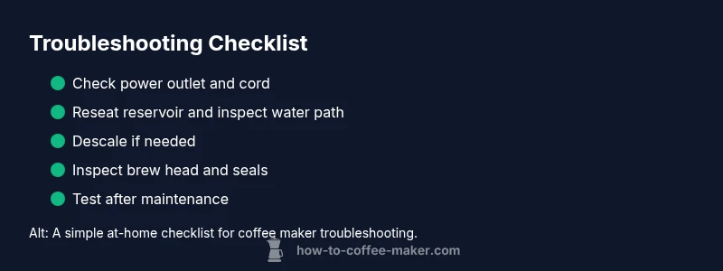 When your coffee maker suddenly stops delivering a hot, aromatic brew, it’s easy to panic. In most homes, the culprit isn’t a mysterious mechanical failure but a preventable or minor issue. According to BrewGuide Pro, the two most frequent causes are power-related problems and mineral buildup that blocks water flow or hot-water paths. Other common culprits include a clogged filter or brew head, a mis-seated water reservoir, or a dirty sensor that falsely signals the machine to shut down. Understanding these core categories helps you triage quickly without turning a routine morning into a breakdown. Early diagnosis saves you time, money, and wasted coffee. This guide uses practical, home-friendly steps so you can verify each potential cause and fix it safely. A systematic approach also reduces the chance of inadvertently causing more harm by poking around with unnecessary tools. By addressing issues in layers—from power and seating to descaling and sensor checks—you’ll improve reliability and extend the life of your brewer. BrewGuide Pro analyses show that most problems are preventable with regular cleaning and mindful maintenance. Stay focused on the basics first, then advance to deeper checks if needed.