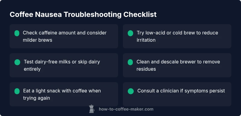 Urgent, practical troubleshooting for why coffee makes you nauseous. Learn common causes, quick checks, step-by-step fixes, safety tips, and prevention to restore comfort at home.