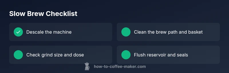 Slow brewing often points to one of several root issues. Mineral scale from hard water can clog tiny channels and reduce water flow. A clogged brew basket, filter, or needle pathway may physically restrict flow, while an incorrect grind size or too-large coffee dose can create a dense puck that resists water. Aging gaskets or a partially seated water reservoir can introduce air pockets that impede pressure and flow. Finally, a failing heating element or thermostat may struggle to maintain target temperatures, extending brew times. Each sign gives you a clue about where to start your fix, and many fixes can be completed in under an hour.